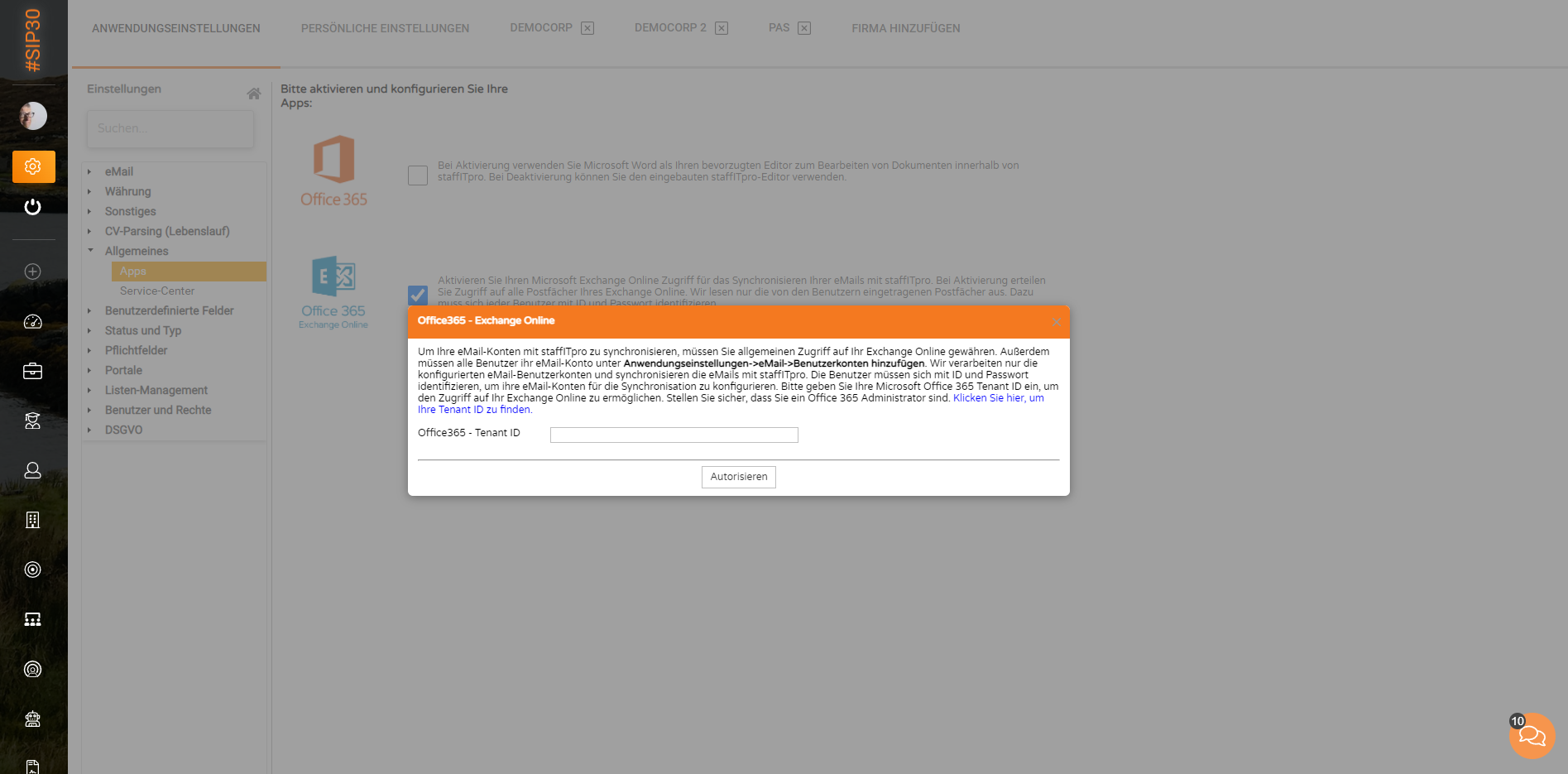 In staffitpro 3.0 bieten wir Nutzern die Option, das Email Postfach mit Exchange Online zu verbinden (OAuth2). Diese Einstellung bietet beispielsweise die Möglichkeit, das Email Konto an seinen staffITpro 3.0 User zu verknüpfen, wenn man im o365 Firmenprofil MFA aktiviert hat. Dabei wird ein Token zur Autorisierung zwischen staffITpro 3.0 und o365 ausgetauscht.